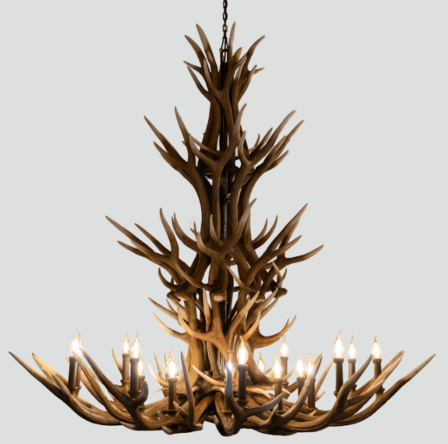 Inspirado na majestade de Kenai, o Lustre de chifres de alces Kenai é uma peça imponente que combina rusticidade e sofisticação. Com um diâmetro de 150cm e uma altura de 150cm , este brilho pesa 40kg e apresenta um cor ambarino, como os naturais . Feito de resina e metal , ele conta com 24 soquetes para lâmpadas E14 , cada um com potência máxima de 40W . As lâmpadas não acompanham o produto e são vendidas separadamente.